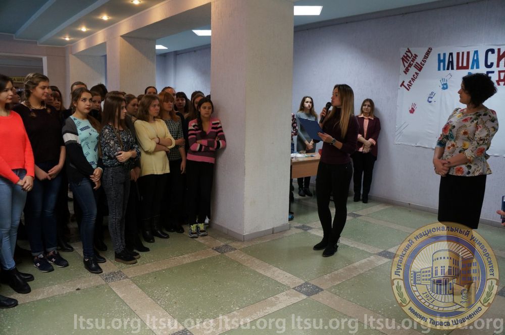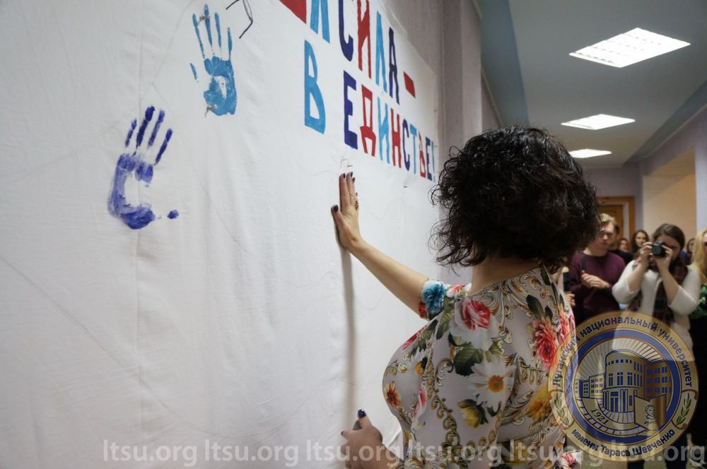 В стенах Луганского национального университета имени Тараса Шевченко в преддверии Дня народного единства прошла ежегодная студенческая акция под названием «Согласие сегодня – мир навсегда».В ЛНР День народного единства официально утвердили в мае 2015, однако корни его уходят в далекий 1612 год. ЛНУ имени Тараса Шевченко не остается в стороне и поддерживает традиции, ведь для нашей Республики этот праздник имеет особое значение. Акция проводится для сплочения студентов, преподавателей, руководства и всех тех, кто имеет отношение к развитию вуза и Республики.