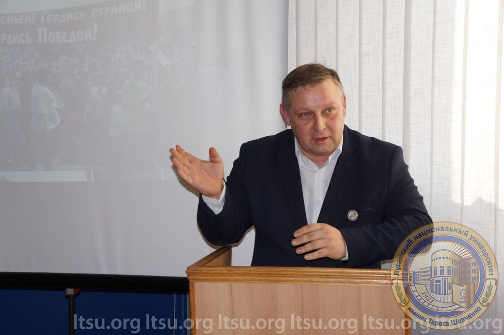 Модератор круглого стола, кандидат исторических наук, доцент, и.о. заведующего кафедрой истории Отечества ЛНУ имени Тараса Шевченко Татьяна Анпилогова поприветствовала всех присутствующих и предоставила слово почетному гостю – депутату Народного Совета ЛНР, председателю Общественного совета при Главе ЛНР Николаю Запорожцеву:
