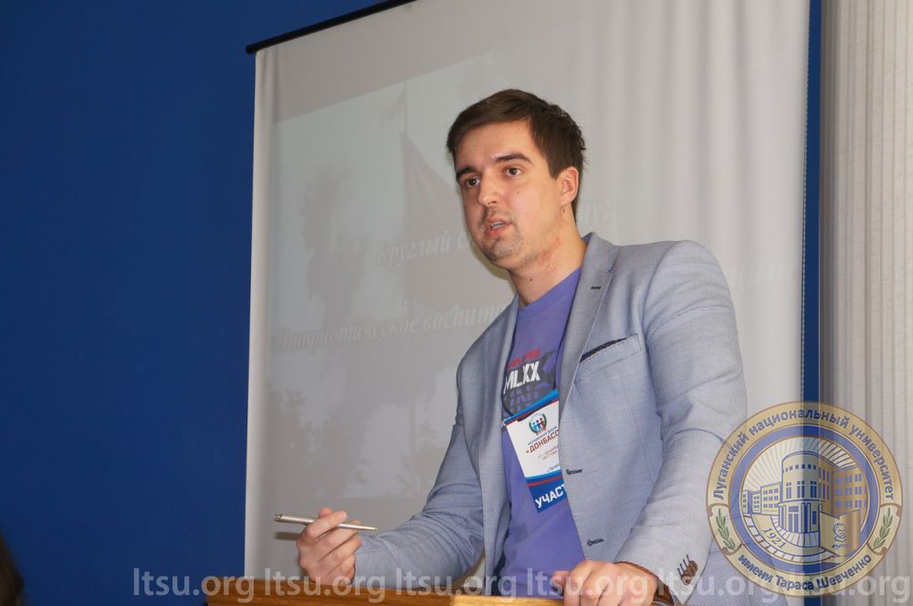 В рамках работы Молодежного форума «Донбасс» 17 ноября на базе Луганского национального университета имени Тараса Шевченко состоялся круглый стол на тему «Патриотическое воспитание: пути реализации».Патриотическое воспитание молодого поколения является одной из важнейших задач, стоящих перед руководством Луганской и Донецкой народных республик, педагогами государственных образовательных учреждений высшего профессионального образования и средних общеобразовательных учреждений, представителями социально активной молодежи.