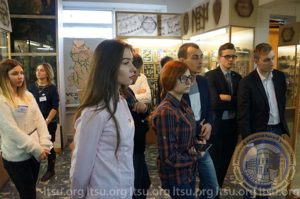 Дальше гостей молодежного проекта ожидала не мене интересная и увлекательная экскурсия в Центр археологии и этнографии университета. Молодым людям удалось узнать об археологических памятниках Луганщины, а также поинтересоваться о проблемах, над которыми работает Центр вуза. Экскурсовод поведал гостям, что Луганщина – полиэтничный регион. На ее степной территории пересекались исторические судьбы многочисленных племен и этносов, начало которых восходит к далекому прошлому. Каждый народ, обитавший в здешних краях, оставил свой след в истории.