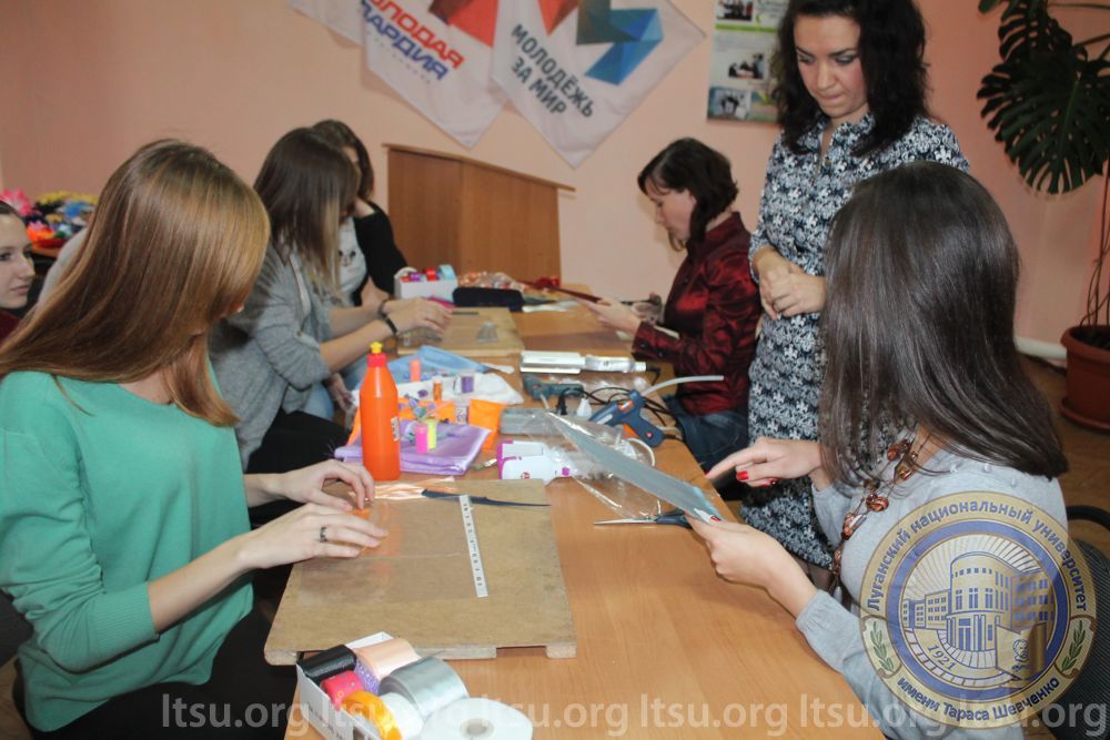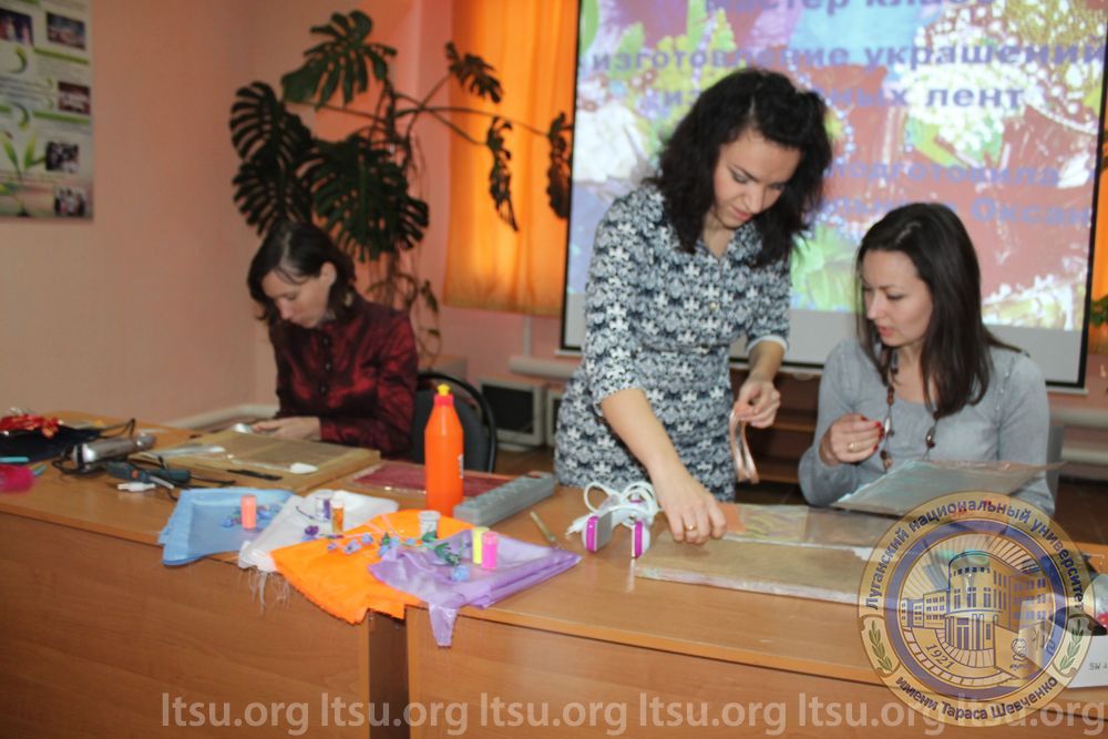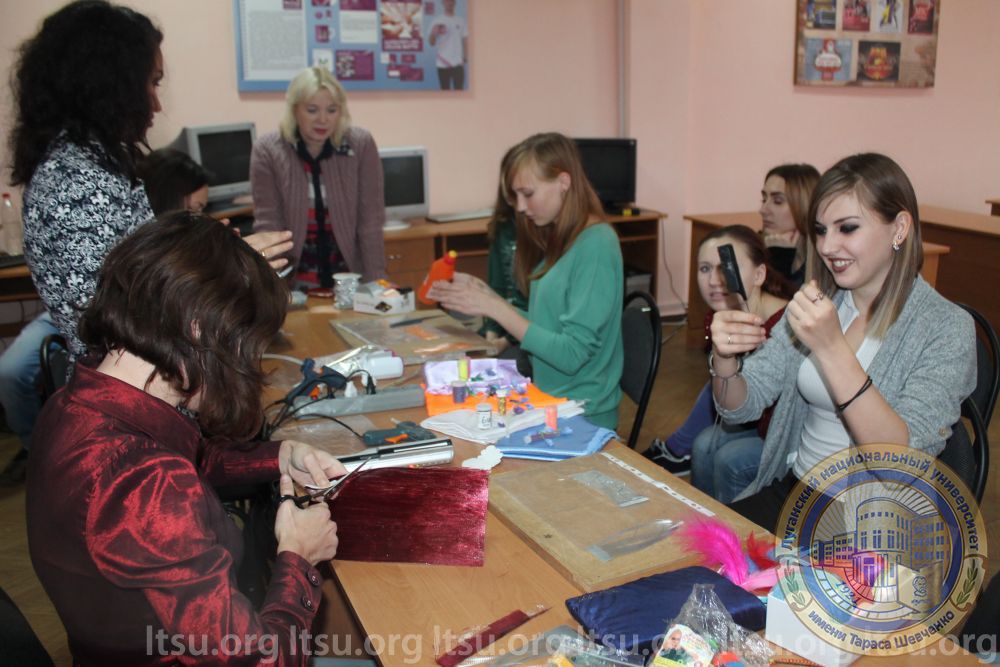 В Брянковском колледже ЛНУ имени Тараса Шевченко 20 ноября в рамках Дней искусства состоялся мастер-класс на тему «Изготовление украшений из атласных лент», который подготовила и провела студентка 4 курса специальности «Парикмахерское искусство» Оксана Сильнова.Оксана Сильнова в течение нескольких лет занимается изготовлением декоративных украшений из различных материалов. Знания, полученные в колледже при изучении предмета «Постиж», помогли ей создать новую технику обработки атласных лент, носящую название «Проклеенная лента». Сегодня весьма ценятся вещи, изготовленные своими руками. Такие украшения эксклюзивны, самобытны и способны наилучшим образом подчеркнуть ваш индивидуальный стиль.