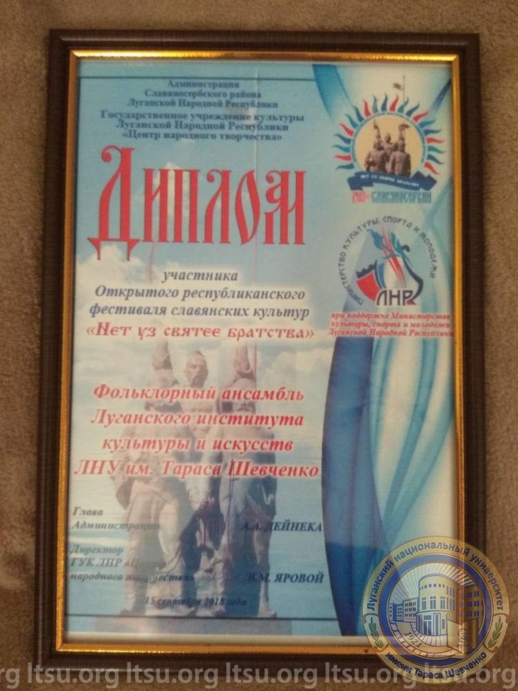 В рамках празднования 265-летнего юбилея со дня основания Славяносербщины также состоялся открытый Республиканский фестиваль славянских культур «Нет уз святее братства», в котором, стоит отметить, принял участие фольклорный ансамбль Института культуры и искусств (руководитель Татьяна Бавыка).