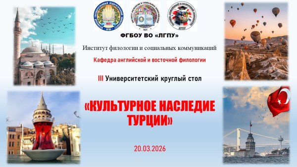 Университетский круглый стол «Культурное наследие Турции» Пятница, 20 марта 2026 года г. Луганск, ул. Оборонная, 2, ЛГПУ, корпус № 1, ауд. 1-139 Информационное письмо