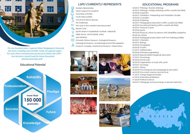 The Department of International and Regional Cooperation is a structural unit of Luhansk State Pedagogical University, which determines the main directions of the University international cooperation and ensures the development, coordination and implementation of measures to enhance it. The Department of International and Regional Cooperation was established to solve the complex task of creating and ensuring strong international relations of the university and carrying out activities aimed at strengthening the research, educational, and cultural potential of the university; creating a network of partnerships with foreign universities, educational organizations, and research centers, organizing and coordinating the university participation in international cooperation programs aimed at imporving the quality of education, developing the academic mobility of students and teachers, as well as enhancing the international prestige of the university.