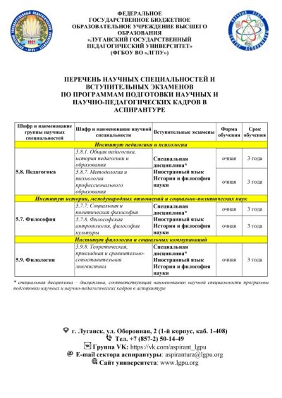 ВКонтакте:https://vk.com/aspirant_lgpu